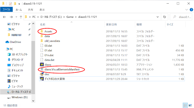 ※ 「ディアボロの大冒険」の場合は、実行ファイルが「diavo」なので、「diavo.VisualElementsManifest.xml」になります。