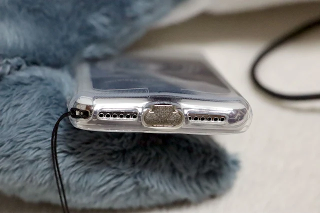Qi アダプタそのままの状態だと背面カメラが隠れてしまうため、根元を3つ折りにして、ケース内に入れました。